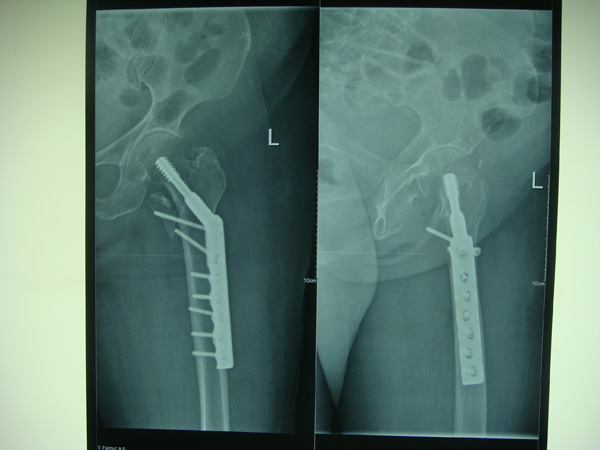 數(shù)日前,東莊鎮(zhèn)89歲的林阿婆外出時腳底不慎打滑,摔倒在地,臀部著地后頓時疼痛難忍,家人立即將她送往莆田盛興醫(yī)院骨科治療。拍片提示:右股骨粗隆間骨折??紤]到由于老人年齡大、體質(zhì)差,又曾患過腦梗,骨折處如果進(jìn)行手術(shù)復(fù)位鳳險很大。為了提高生活質(zhì)量,在征得患者及家屬同意,經(jīng)骨科、內(nèi)科、麻醉科共同會診及術(shù)前相關(guān)準(zhǔn)備后,于7月9日骨科主任陳長光副主任醫(yī)師主刀下行“切開復(fù)位DHS內(nèi)固定術(shù)”, 手術(shù)順利完成,術(shù)中出血量少,各項生命體征平穩(wěn)。術(shù)后指導(dǎo)其肢體功能鍛煉,患者病情恢復(fù)良好,現(xiàn)已能下地行走活動,生活質(zhì)量得到明顯提高。