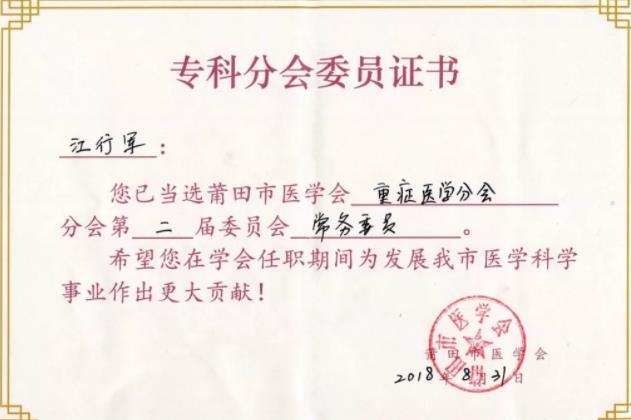 熱烈祝賀盛興醫(yī)院重癥(ICU)科主任   江行軍 當選莆田市醫(yī)學會   重癥醫(yī)學分……