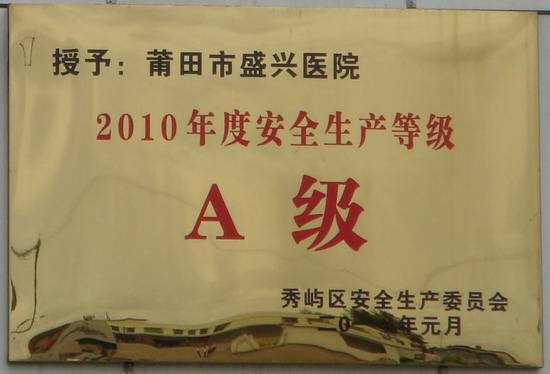 2012年度莆田盛興醫(yī)院安全生產(chǎn)榮譽(yù)A級(jí)