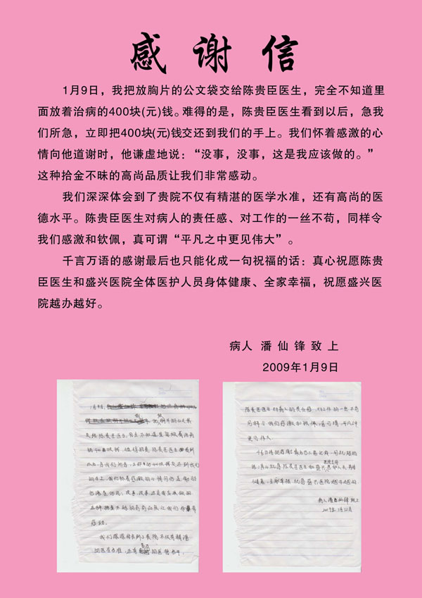 一位患者寫給盛興醫(yī)生的感謝信