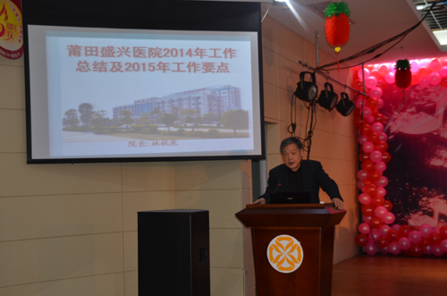 首先由莆田盛興醫(yī)院院長林秋泉作2014年工作總結報告以及部署2015年的工作。隨后,由集團公司董事長林玉盛及副總裁王芬珍講話。然后,由業(yè)務副院長張錦華宣讀《莆田盛興醫(yī)院關于2014年度先進個人、先進集體表彰的決定》;并由公司及醫(yī)院領導為先進個人、集體、班組、愛院家屬頒獎。2014年度受表彰的為外科、產科、藥劑科;先進班組為神經內科護理組、急診科醫(yī)院組、客服組;先進個人共有34人,他們是:龐德友、冀瑞芹、劉傳金、殷存強、李慰群、陳超群、徐囯興、林靜潔、許燕瓊、程敏敏、康景霞、劉靜、朱宇方、張麗君、鄭鳳嬌、吳建鋒、林梅梅、林桃妹、戴映梅、張敏、余文娜、康秋萍、林黎明、彭麗貞、柯冠青、陳雪梅、周雪英、鄭雪凡、徐麗靜、吳琪英、陳散英、林建慶、劉天書、汪振洪;愛院家屬為陳學峰同志。