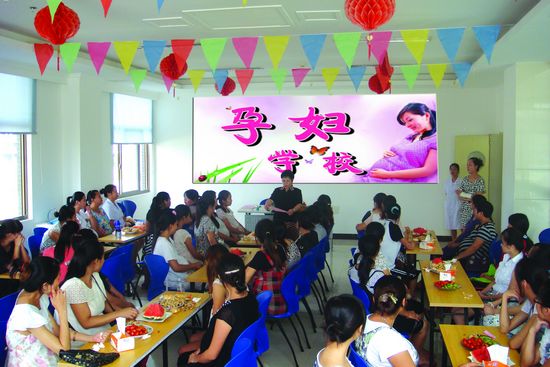當日上午9點30左右,受邀請前來參加的準媽媽們挺著高高隆起的肚子,在親人的陪伴下陸續(xù)到達。“您好,歡迎您到孕婦學校學習!”準媽媽們剛走進門診一樓大廳,身穿粉色護士裝的導醫(yī)們便親切地招呼,并熱情地把孕產(chǎn)婦引進孕婦學校,將近臨產(chǎn)、行動不便的準媽媽攙扶入座。