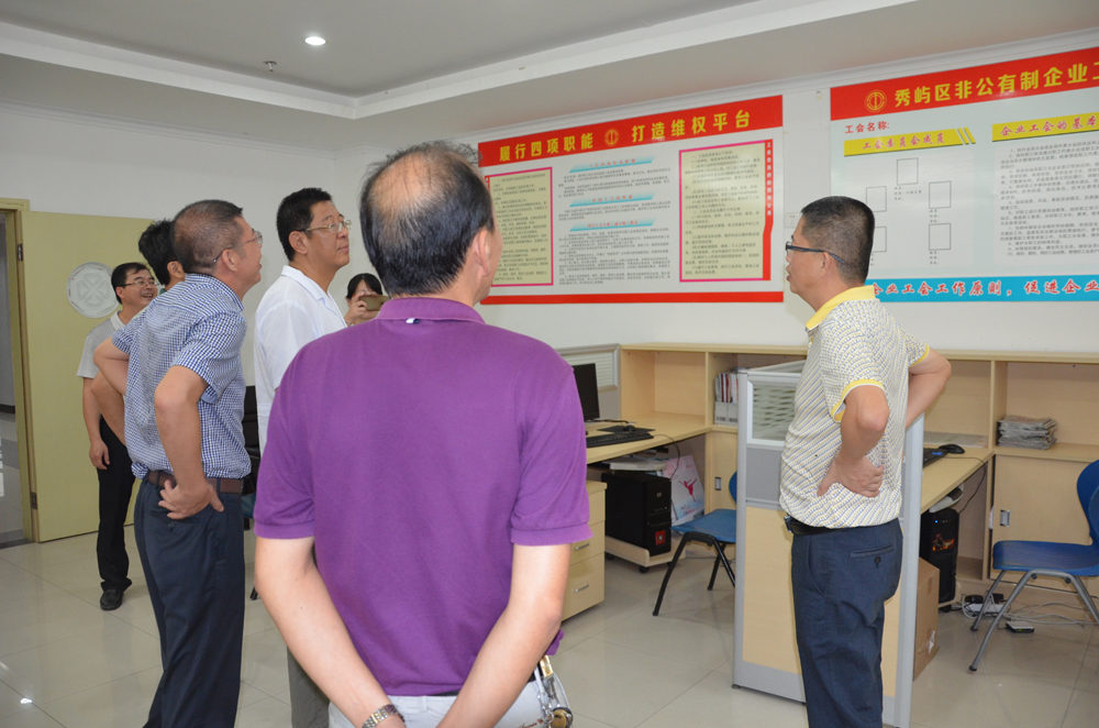 在我院總工會主席潘囯華、副主席李育華的帶領下來到門診五樓行政區(qū),調研組一行先后參觀、了解醫(yī)院的職工書屋以及醫(yī)院工會院務公開和職代會開展情況等。