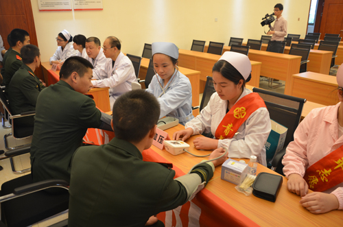 在現(xiàn)場,醫(yī)護人員一字排開,一對一地為前來參加義診的官兵們檢查身體,共為70多名官兵提供免費醫(yī)療服務(wù),還為消防官兵送去價值一千多元的常備藥品,在健康常識問題上更是為他們詳細地解疑釋惑,并為他們提供切實可行的保健預(yù)防建議,為消防官兵送上一份健康大禮。