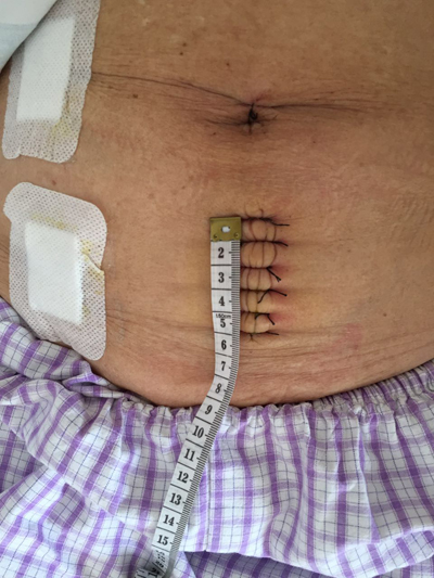 2017年5月20日,在福建醫(yī)科大學(xué)Di一附屬醫(yī)院胃腸外科主任、腔鏡學(xué)科組組長石錚教授的指導(dǎo)下,由我院外科主任成濤主刀,成功開展了腹腔鏡下結(jié)腸癌茛治術(shù),手術(shù)過程流暢、層次清晰,手術(shù)均取得了滿意的成效。術(shù)后患者入住ICU,術(shù)后第二天開始進(jìn)流質(zhì)飲食,進(jìn)食無惡心嘔吐、無腹痛腹瀉,第三天患者可自行下床活動,未感到切口疼痛,術(shù)后第九天切口拆線,切口甲級愈合,深切感受到薇創(chuàng)技術(shù)給患者所帶來的益處,讓患者及家屬對我院醫(yī)療力量、護(hù)理服務(wù)都表示相當(dāng)滿意。
