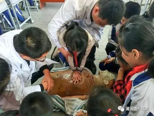 作為外科的吳建鋒醫(yī)生則是親自示范包扎傷口、操作心肺復(fù)蘇,并讓孩子們動(dòng)手實(shí)踐,再一一指點(diǎn)。