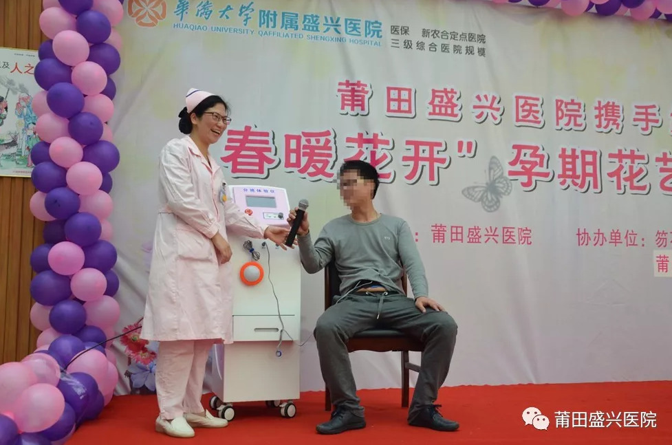 準(zhǔn)爸爸上臺(tái)體驗(yàn)"分娩體驗(yàn)儀"