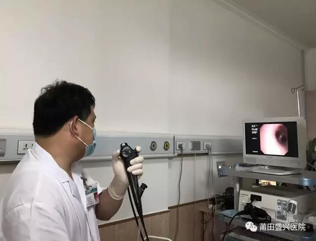 圖為呼吸內(nèi)科關(guān)建華主任為患者做支氣管鏡檢查