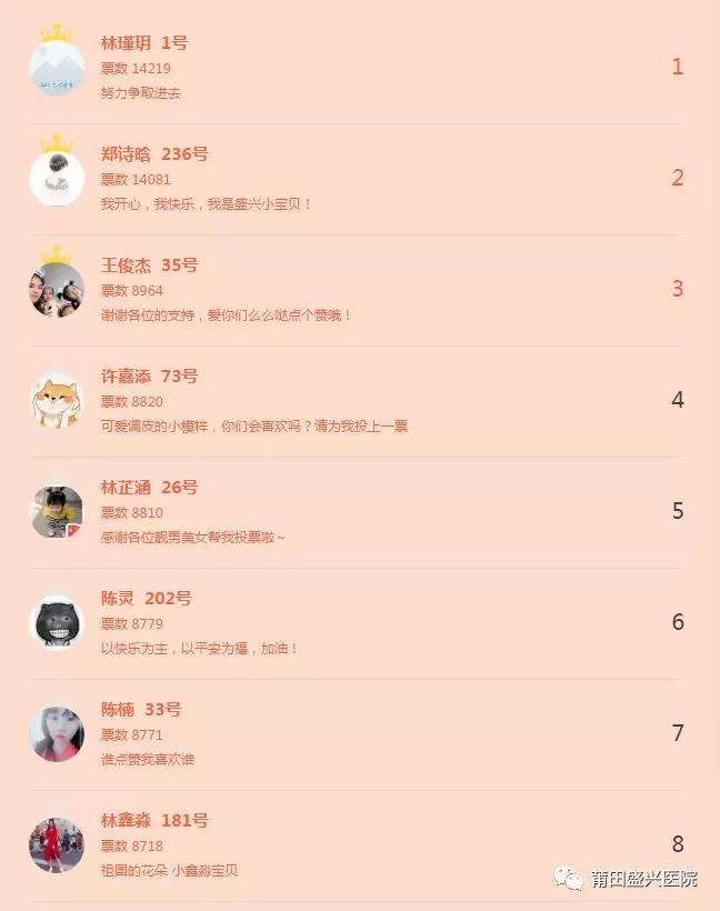 本次活動票數(shù)1-12名的寶寶,