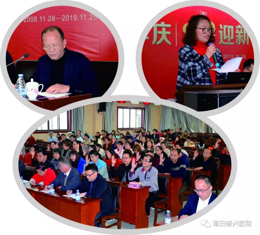 在喜迎建院11周年之際,又適逢元旦臨近,盛興醫(yī)院舉行11周年慶系列活動,2019年12月28日下午3點,在莆田盛興醫(yī)院三樓大型會議室里舉行“2019年總結表彰暨二屆四次職工代表大會”,出席會議的有福興醫(yī)療集團總裁林玉盛先生、總裁夫人林美華女士、副總裁王芬珍教授、副總裁林秋泉先生、副總裁林錦魁先生、常務副總裁王海波先生以及盛興醫(yī)院執(zhí)行院長張朝陽、院工會主席潘國華、業(yè)務副院長張錦華等領導,會議由業(yè)務副院長張錦華先生主持。參加會議的有集團各兄弟醫(yī)院的領導、來賓,院職工代表、年度先進個人等。