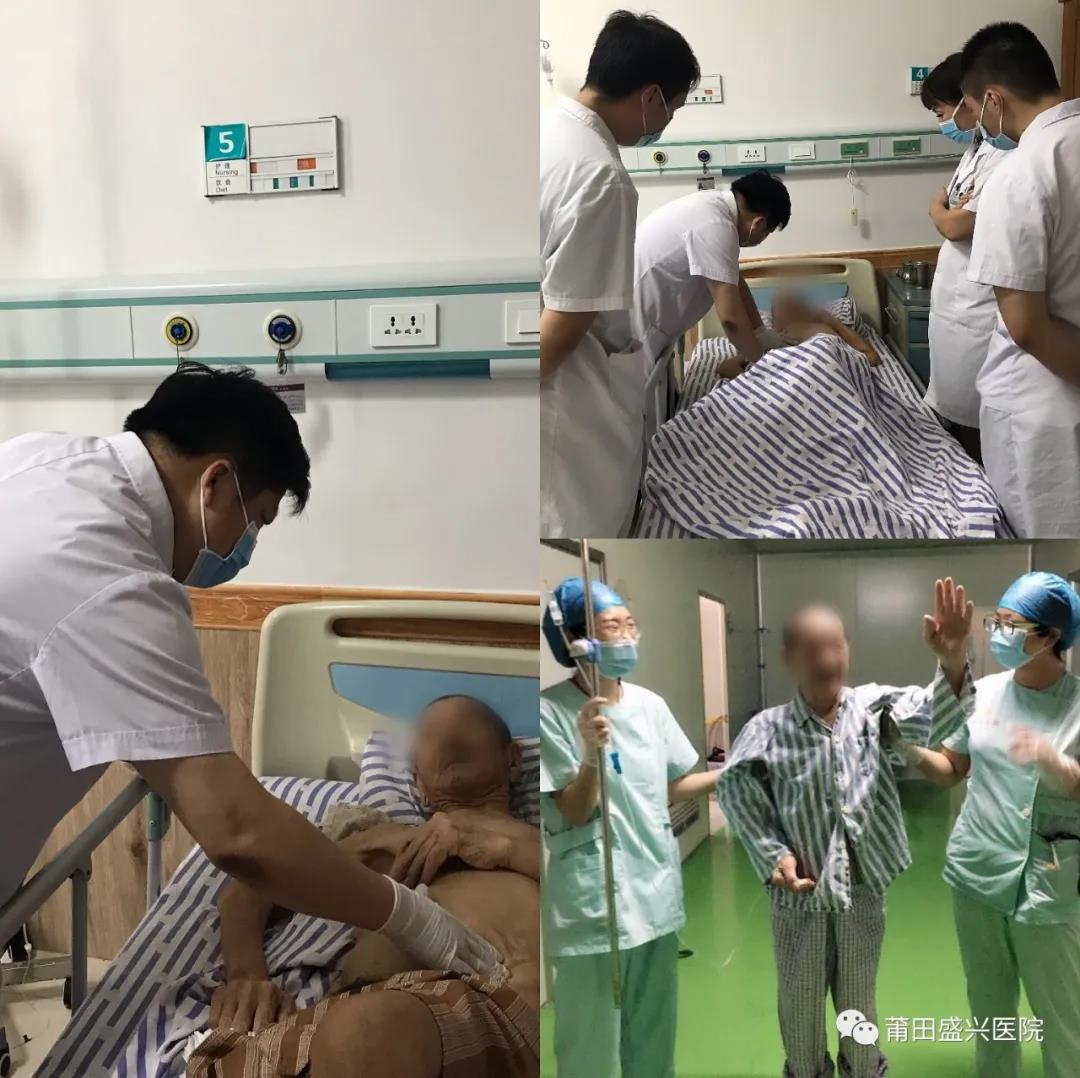 日前,住在護養(yǎng)院83歲的林爺爺,出現了腹痛、發(fā)熱(T37.7)等癥狀,護養(yǎng)院的工作人員為其辦理了入院手續(xù),隨后轉入相鄰的內三科,內三科護理人員立即為其建立靜脈通路,并完善檢驗、腹部CT等檢查項目。方東陽醫(yī)師在行腹部體檢后發(fā)現患者腹部麥氏點壓痛等癥狀,于是急請外科廖朝晗主任及劉艷杰醫(yī)師為其會診,在完善床邊彩超及心電圖檢查后,發(fā)現患者有明顯的腹膜刺激征(壓痛,腹肌緊張),經過結合腹部彩超提示有局限性腹膜炎癥狀,腹部CT示回盲部及末端回腸腸管水腫,周圍滲出明顯合并局限性腹膜炎。針對以上情況,廖主任立即果斷指出必須馬上手術治療,在與家屬溝通協(xié)調后,第一時間轉到手術室行腹腔鏡探查+闌尾切除術。手術過程順利,術后患者移入重癥監(jiān)護室進行觀察治療,因術后腹脹,ICU的護士們鼓勵他下地活動,老人家很聽話,護士們輪流給他攙扶幫助其下地活動。經過幾天的精心治療和護理,林爺爺可以自主下地慢慢行走了,還給護理人員豎起了大拇指!老人家說:這腹腔鏡微創(chuàng)手術真是好,切口小、出血少、疼痛輕,還恢復快。