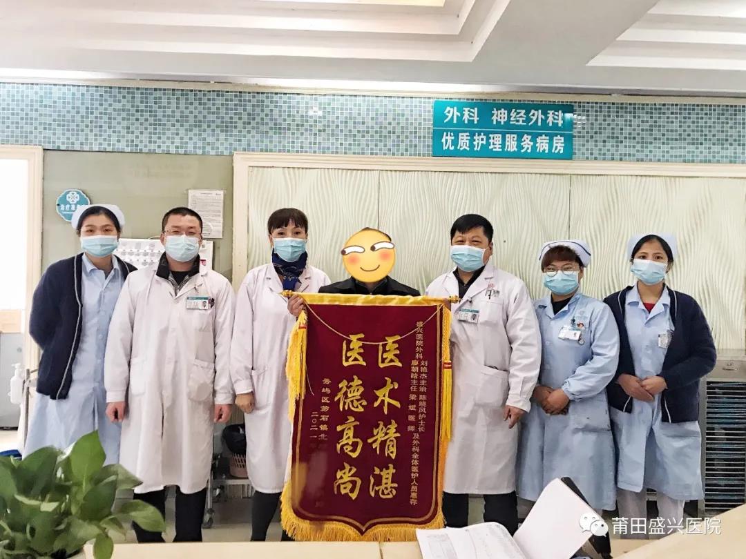 為了表示感謝,患者特意制作了一面錦旗,贈送于外科主任廖朝晗、主治醫(yī)師劉艷杰、梁彬、護士長陳曉風(fēng)以及全體醫(yī)護人員。