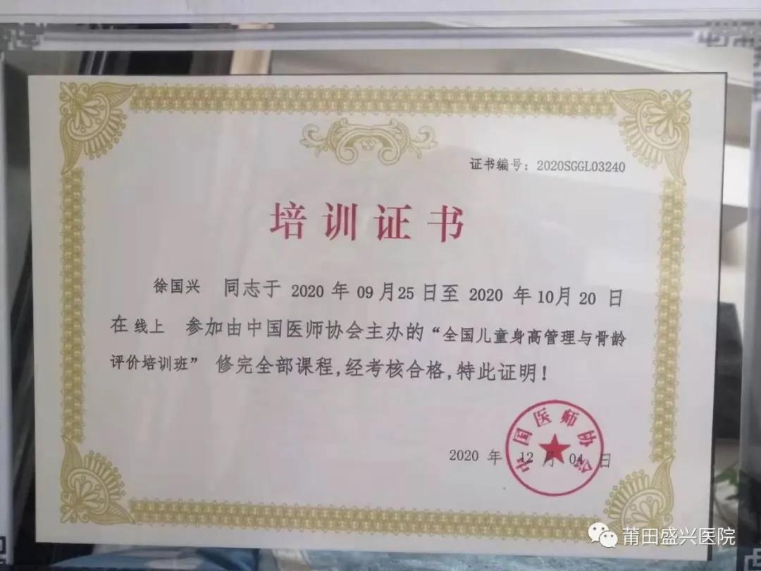2020年師從莆田市第一醫(yī)院李金水主任,進(jìn)修學(xué)習(xí)“矮小癥、性早熟”相關(guān)知識,對“矮小癥”、“性早熟”診療能夠熟練掌握。并順利通過國家醫(yī)學(xué)委員會舉辦的第20屆骨齡學(xué)習(xí)培訓(xùn)班,并取得骨齡評定合格證書。