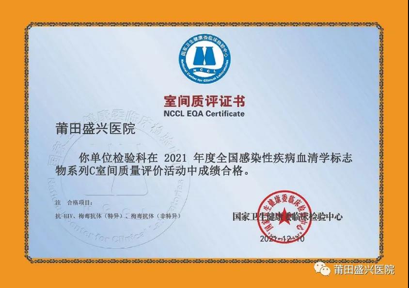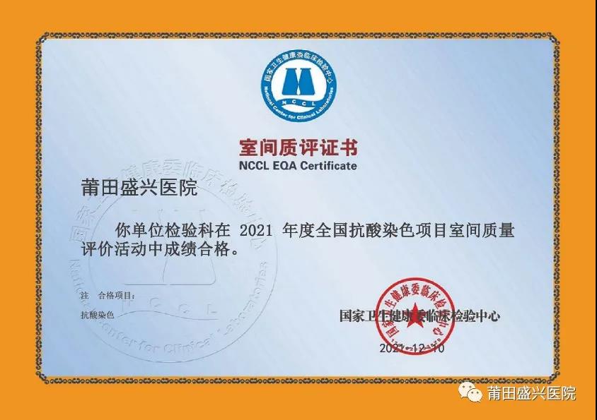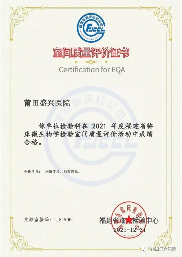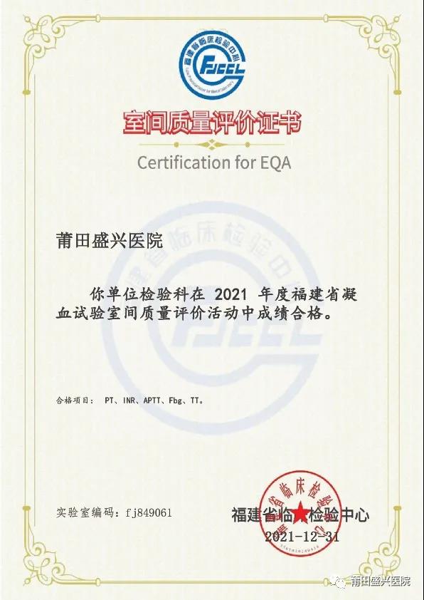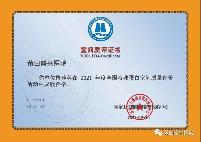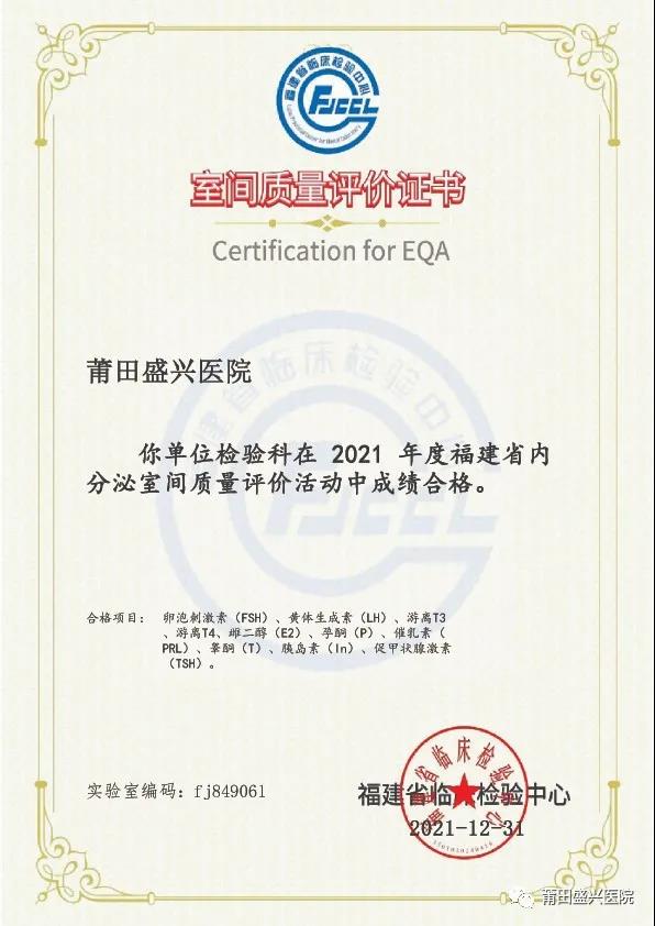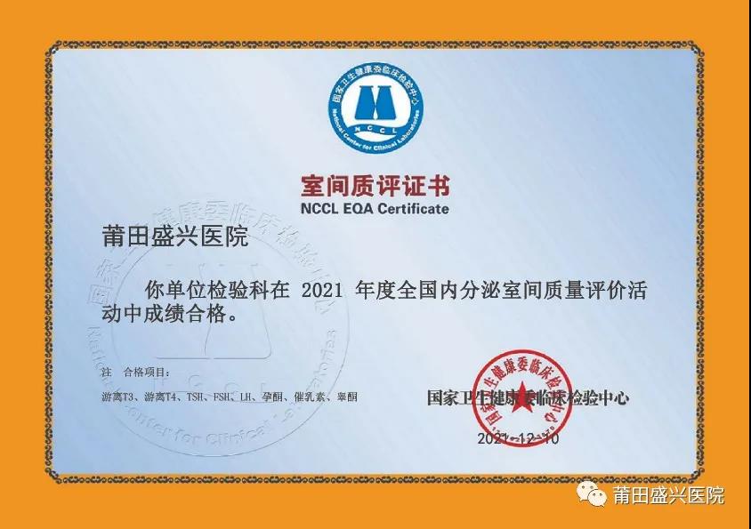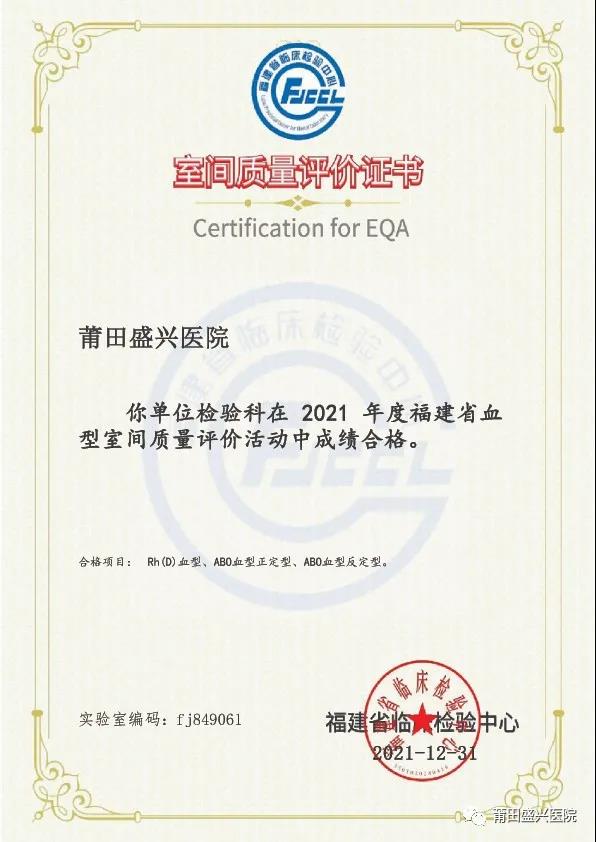 (下面圖片為2021年參加福建省常規(guī)化學(xué)室間質(zhì)量評(píng)價(jià)獲得的證書)
