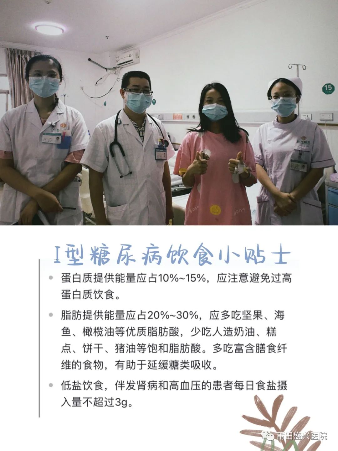 住院期間,主管醫(yī)生和責(zé)任護(hù)士加強(qiáng)照護(hù),考慮到該患者還是一名學(xué)生,疾病相關(guān)知識不足,我們護(hù)士給予重點宣教,把她當(dāng)作妹妹看待,耐心、詳細(xì)地講解疾病相關(guān)知識,包括飲食,運動,藥物治療等,患者的父親也從當(dāng)初的焦慮狀態(tài),變得滿面笑容的對著患者說,你要跟醫(yī)生和護(hù)士姐姐說謝謝,是他們救了你……言語中充滿了濃濃的感激之情!