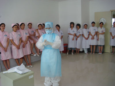 為了進(jìn)一步增強(qiáng)防控甲型H1N1流感的能力,6月24日莆田盛興醫(yī)院舉行醫(yī)護(hù)人員個(gè)人防護(hù)服穿、戴、脫的操作培訓(xùn)。我院60多位醫(yī)護(hù)人員參加了培訓(xùn)。