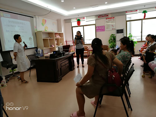 義診活動的同時,還在三樓孕婦學(xué)校專門開設(shè)專題講座《關(guān)愛母子健康——孕期家庭自我監(jiān)護(hù)的重要性》,由我院產(chǎn)科主任王曉艷為孕產(chǎn)婦講課。