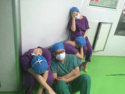 如同5月19日,那天深夜,手術(shù)室里的無影燈還亮著,當(dāng)日手術(shù)總數(shù)15臺,急診手術(shù)10臺(白天5臺夜間5臺),其中骨科一臺斷指從14:40一直做到21:30順利返回病房,另一臺斷指3個手指頭從23:30持續(xù)做到凌晨5:00,成功接指。就這樣,手麻科醫(yī)護人員與手術(shù)醫(yī)生并肩作戰(zhàn)從早上8:00一直奮戰(zhàn)到5.20凌晨05:00,完成了15臺手術(shù),休息3個小時后繼續(xù)以飽滿的精神狀態(tài)投入第二天的工作。因為次日有22臺手術(shù),其中包括2臺胃切除術(shù)、骨科骨折內(nèi)固定術(shù)2臺、眼科白內(nèi)障14臺、剖腹產(chǎn)4臺。