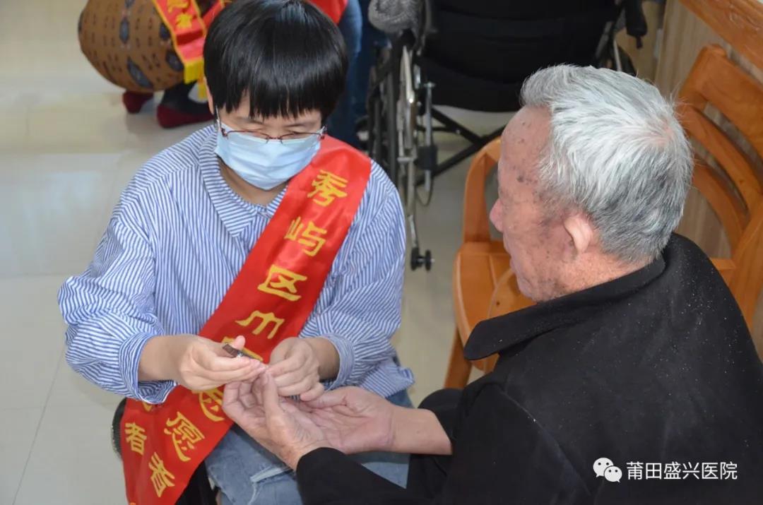 為老人們表演了唱歌、打太極拳、莆仙戲,她們精彩的表演贏得了在場老人和工作人員的陣陣掌聲。他們?yōu)槔先藗儼茨?、打掃房間,聆聽老人們的人生故事,與他們親切交談,噓寒問暖,詳細了解他們的身體健康狀況、傾聽他們的心聲,送上節(jié)日的問候。多種形式開展“歡度重陽、愛老敬老”活動。