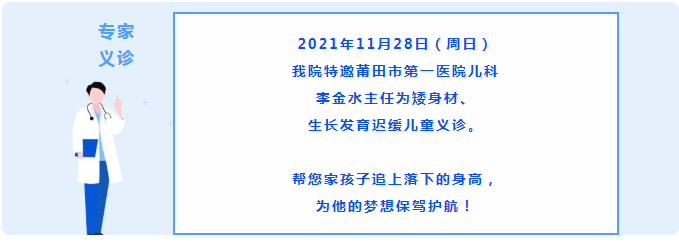 疫情常態(tài)化防控下,醫(yī)務(wù)工作繁忙勞累,這使得很多醫(yī)護(hù)同仁們疏于關(guān)注自家小孩的生長發(fā)育情況。因此,為表達(dá)對(duì)醫(yī)護(hù)人員的敬意,感謝她們?cè)谝咔槠陂g的無私奉獻(xiàn),2021年11月28(周日)我院特邀市級(jí)專家李金水主任開展生長發(fā)育??屏x診活動(dòng),共同助力兒童健康成長。