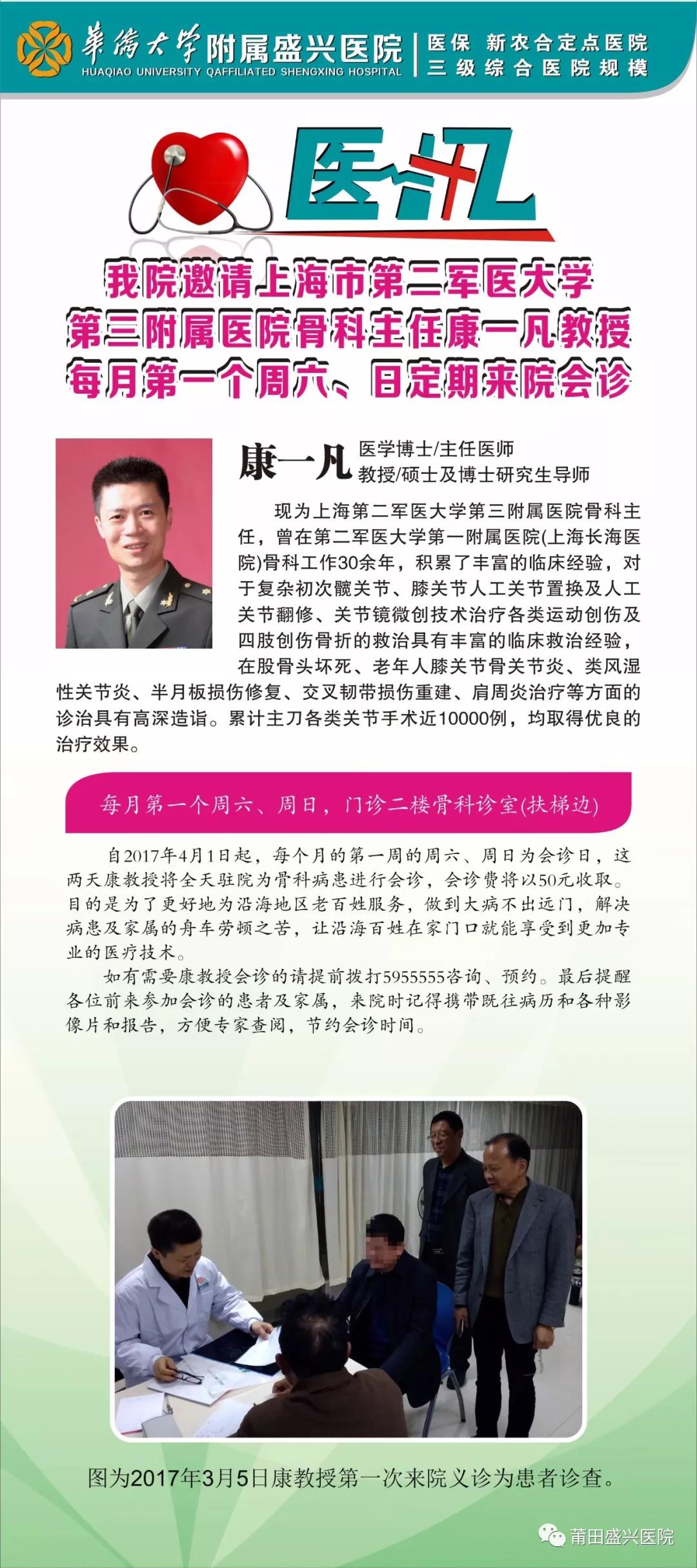 我院特邀上海市第二軍醫(yī)大學(xué)第三附屬醫(yī)院骨科主任康一凡教授定期來(lái)院為骨科病患會(huì)……